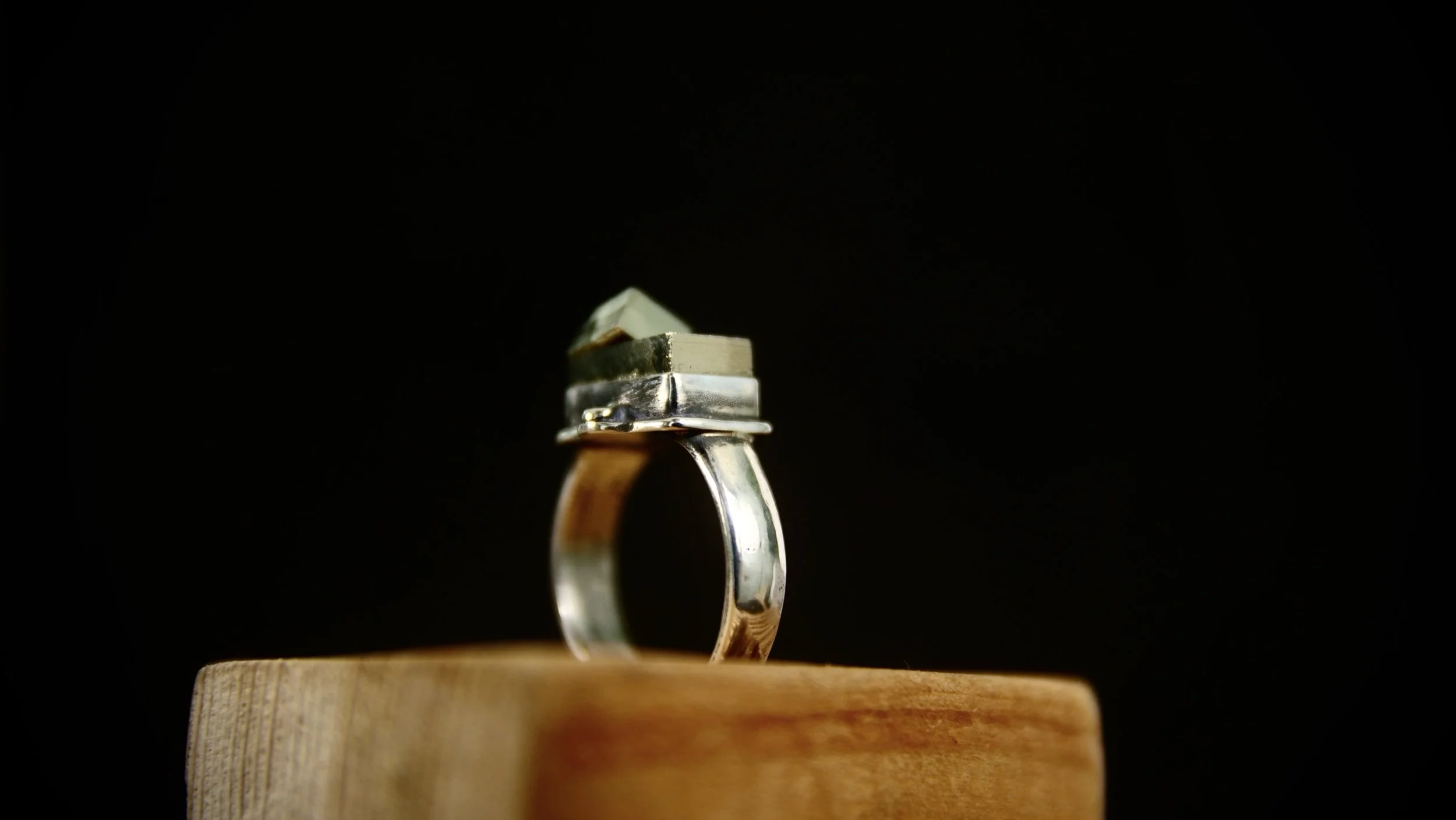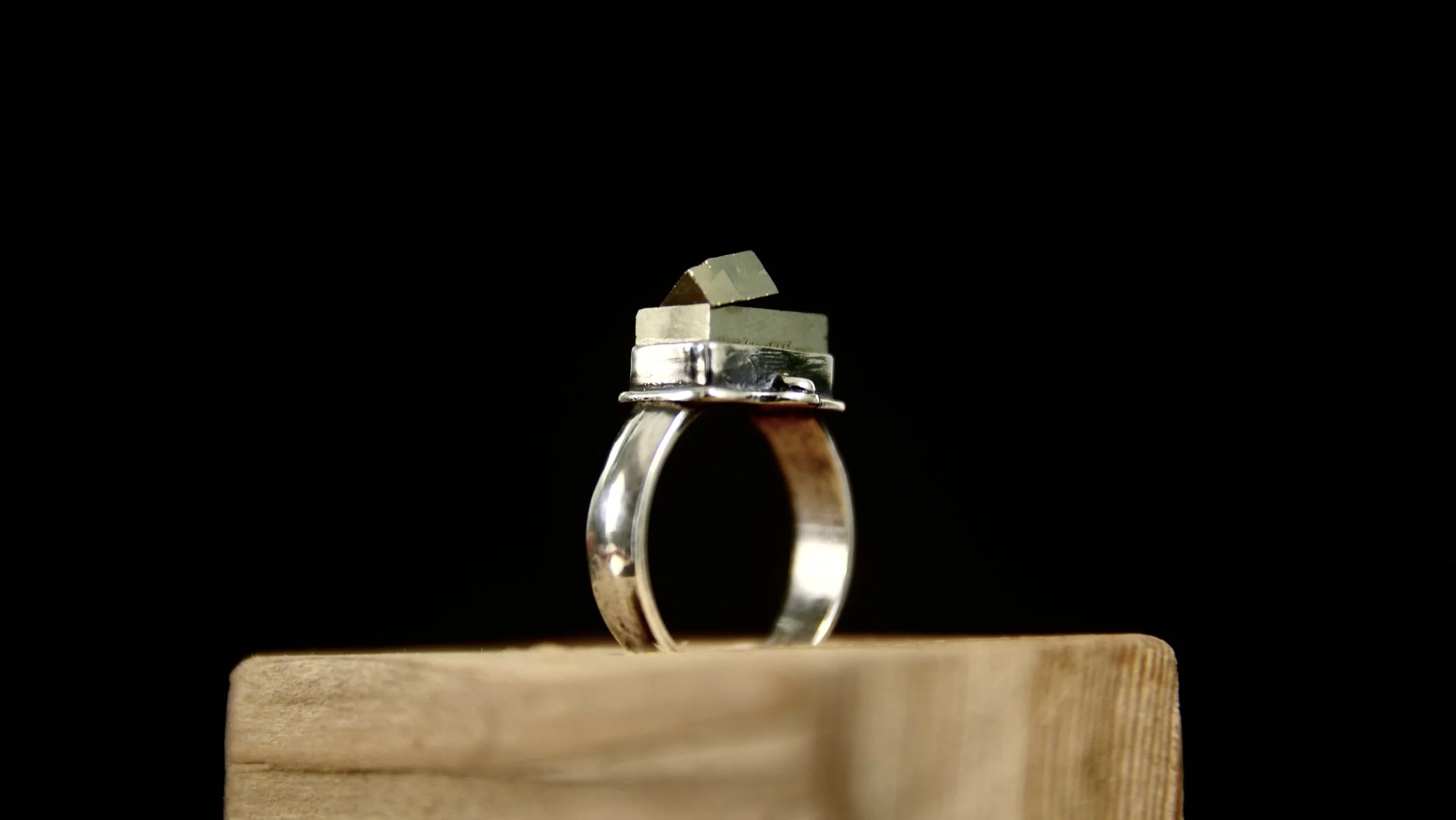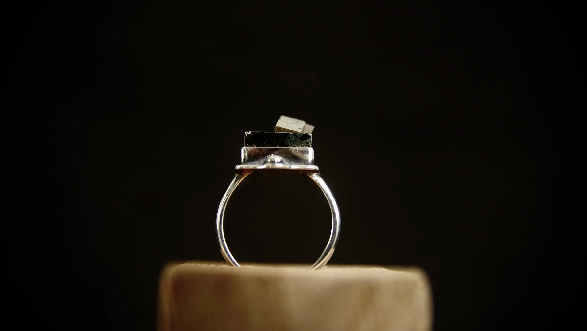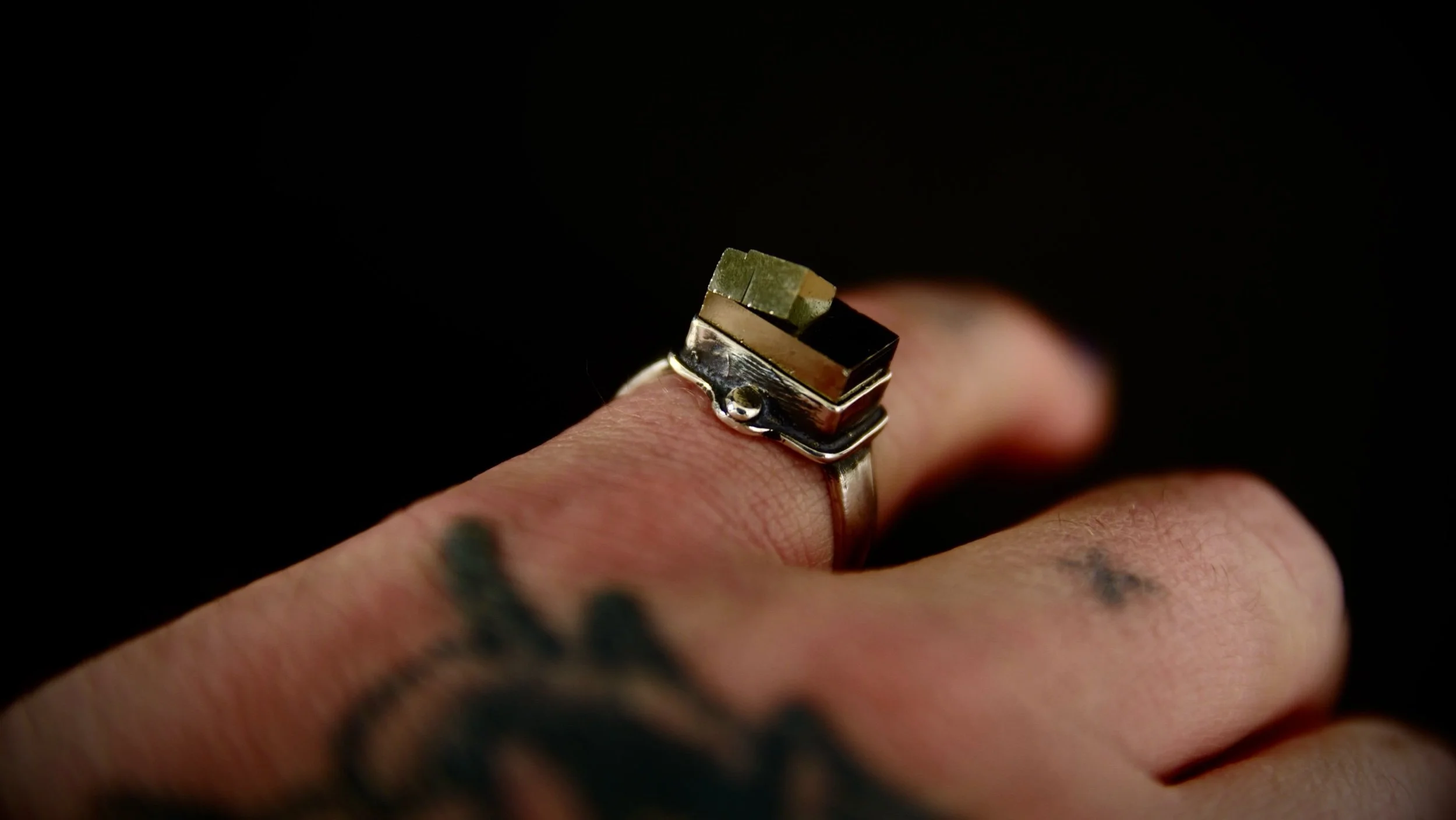 Store › Pyrite ember Image 1 of 5 Image 2 of 5 Image 3 of 5 Image 4 of 5 Image 5 of 5 Pyrite ember $150.00 Beautiful handcrafted ring in sterling silver adorned with a natural piece of pyrite cube. Size 8 Add To Cart Added! Beautiful handcrafted ring in sterling silver adorned with a natural piece of pyrite cube. Size 8