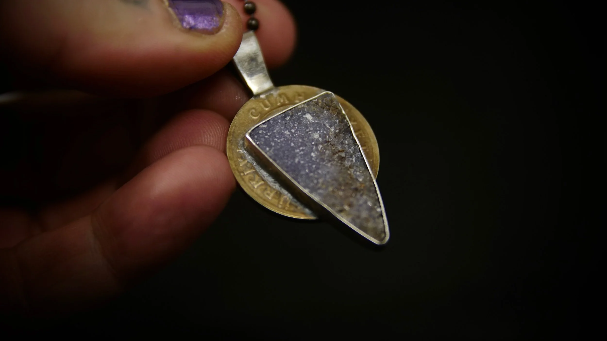 Store › Lira Image 1 of 3 Image 2 of 3 Image 3 of 3 Lira Sale Price: $90.00 Original Price: $130.00 One Lira from Turkey with a druzy piece of Holley blue from Oregon set into to it. Unique one of a kind statement piece. Add To Cart Added! One Lira from Turkey with a druzy piece of Holley blue from Oregon set into to it. Unique one of a kind statement piece.