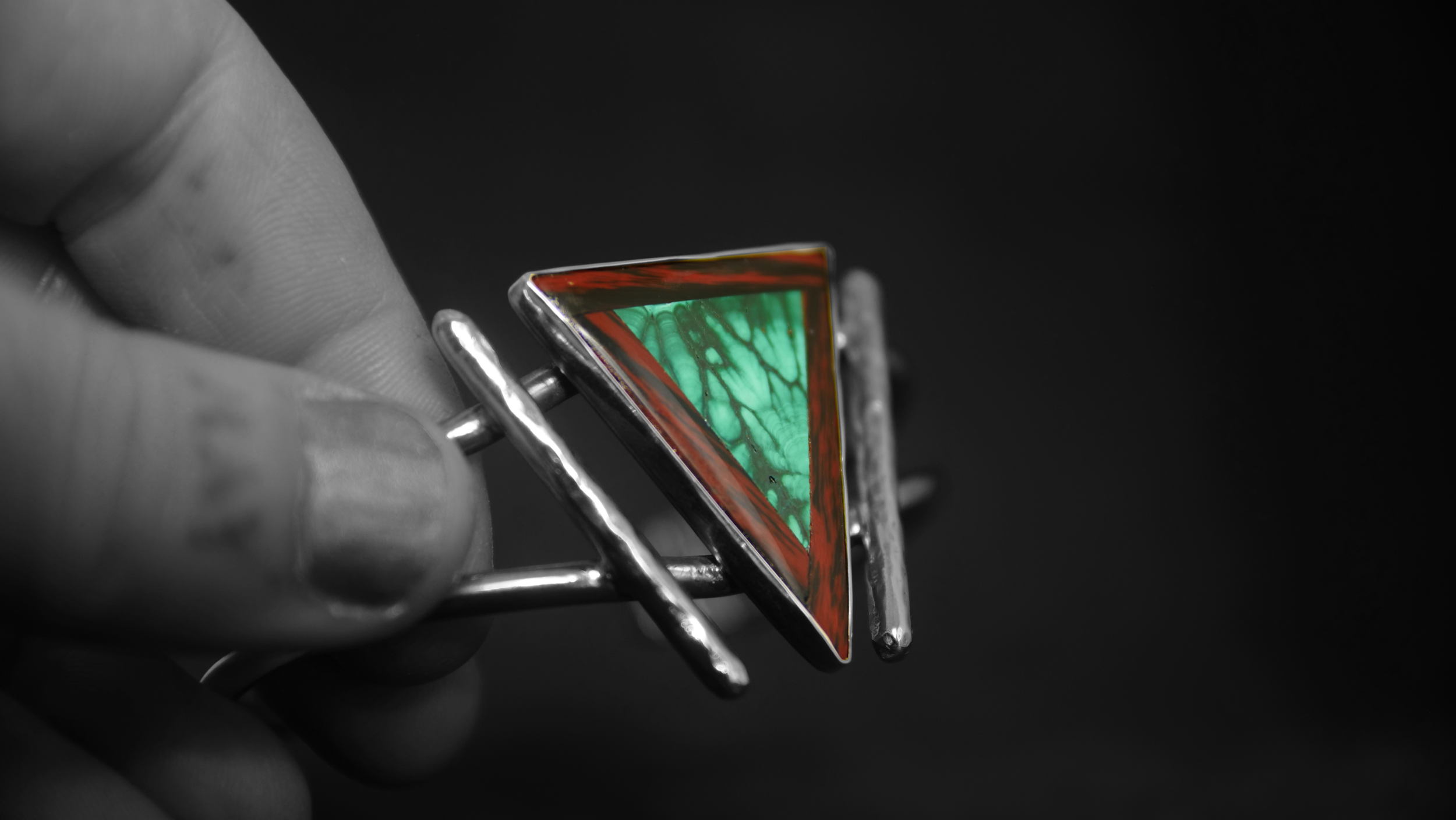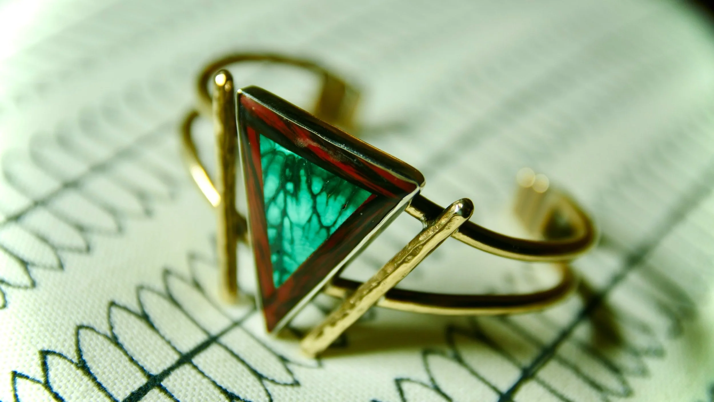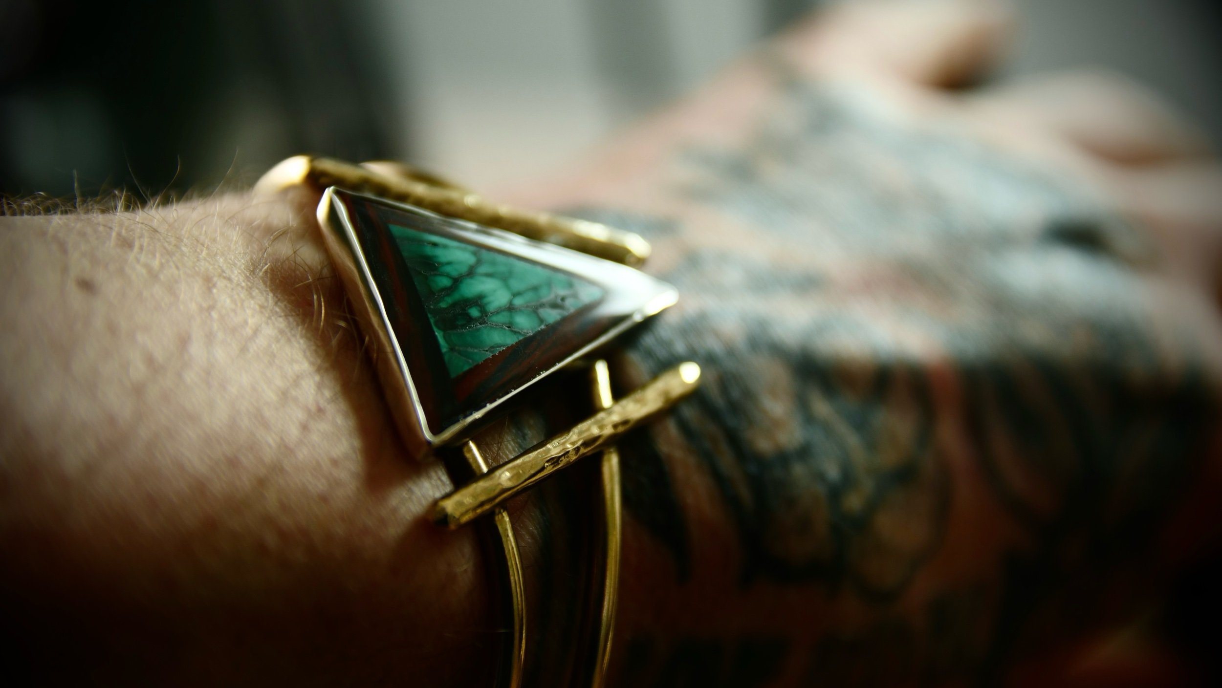Store › Verdant flame Image 1 of 7 Image 2 of 7 Image 3 of 7 Image 4 of 7 Image 5 of 7 Image 6 of 7 Image 7 of 7 Verdant flame $150.00 Hand cut and polished intarsia with malachite surrounded by mahogany obsidian and a brass bracelet. Size Medium/large Add To Cart Added! Hand cut and polished intarsia with malachite surrounded by mahogany obsidian and a brass bracelet. Size Medium/large